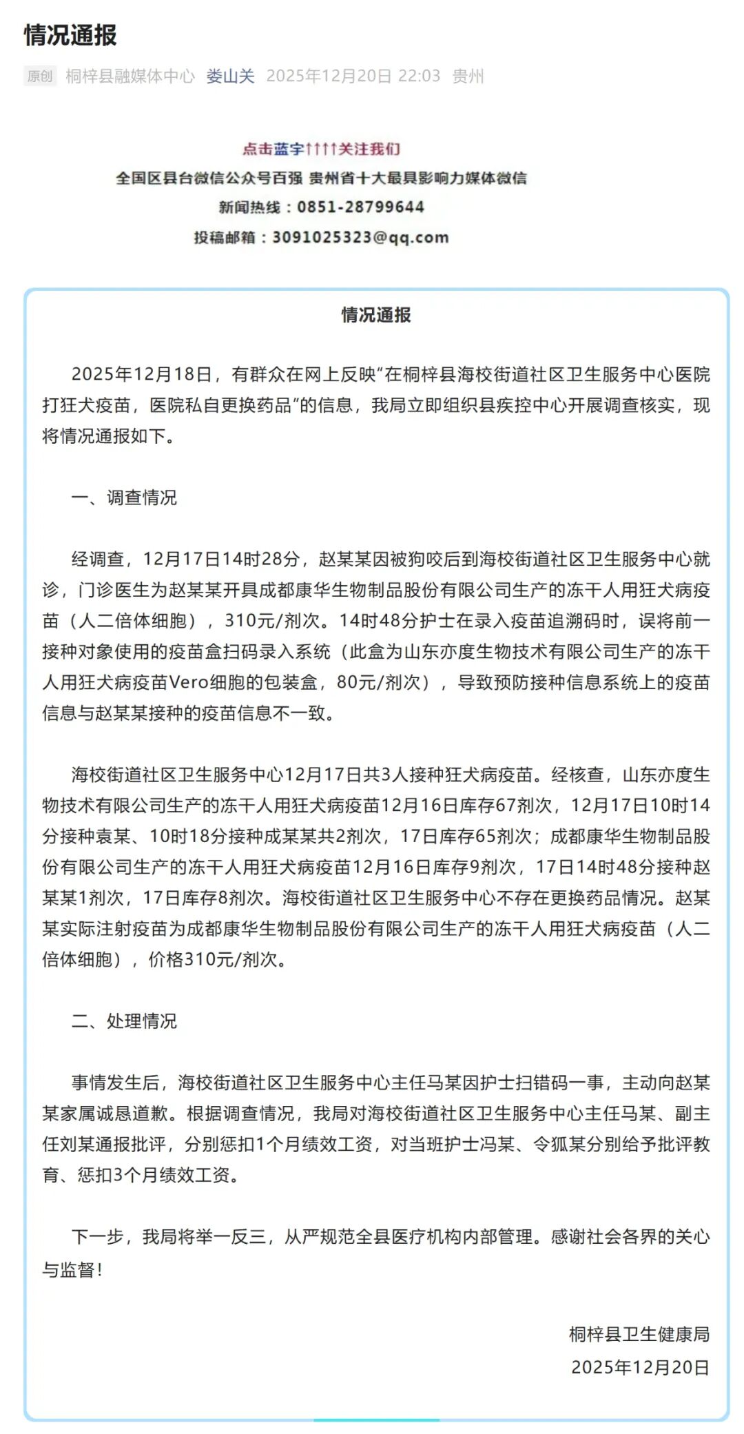 12月20日,贵州桐梓县卫生健康局发布情况通报: