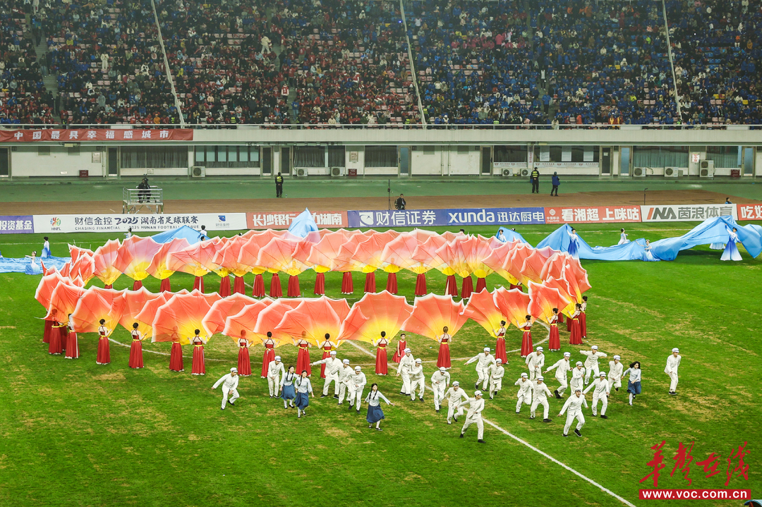 新湖南客户端12月20日讯(全媒体记者 赖泳源 朱倩萱)今晚,湘超半决赛长沙对阵永州,在长沙贺龙体育场开赛。比赛中场,长沙演艺新空间将深受观众喜爱的火爆项目《寻长沙》《新刘海砍樵》《恰同学少年》《江天暮雪》等剧目搬上了绿茵场,让球迷沉浸式体验长沙“新演艺之都”的独特魅力。