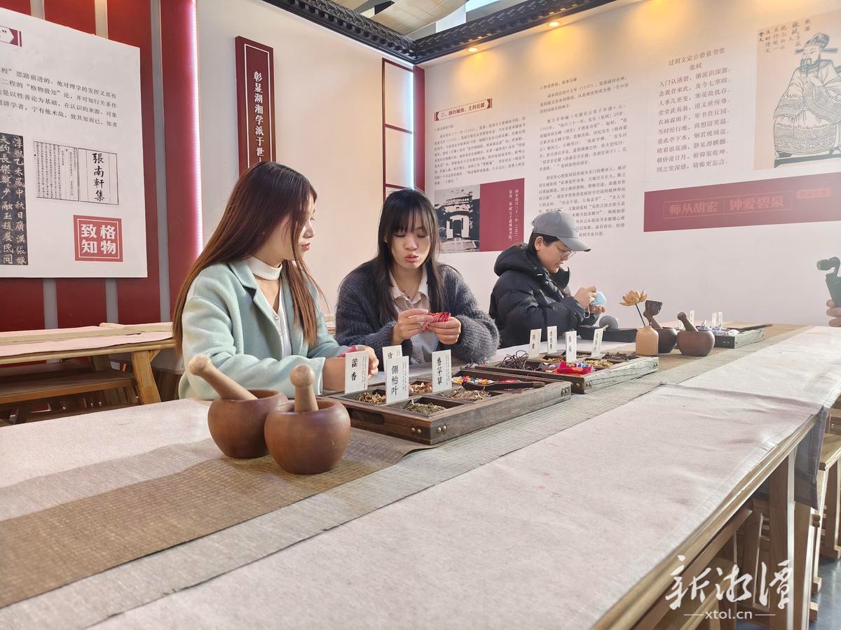 在湖湘学展陈馆,“经世致用”的湖湘文化通过图文变得可触可感;手作区里,来访者可以亲手制作香囊、书写扇面,让文化从书本走向指尖……基地自去年运营以来,已接待游客近10万人次。