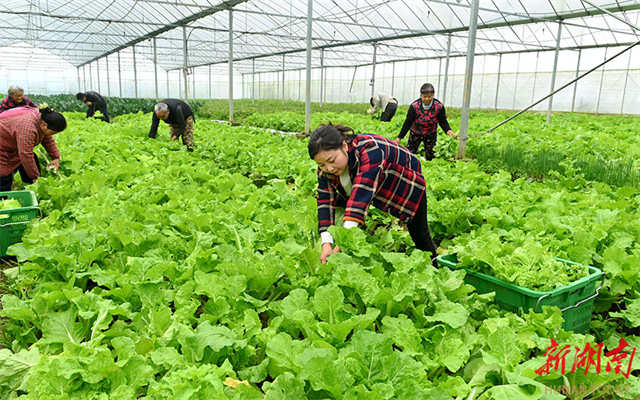 On December 17, farmers harvest Chinese cabbages at a vegetable plantation in Yuelong Village, Huagu Neighborhood, Dongkou County. Recently, vegetables grown in winter-idle seedling greenhouses by local farmers have reached harvest season. Farmers are seizing the farming season to harvest greenhouse cabbages, ensuring market supply and enriching the winter "vegetable baskets" for urban residents. (Photo/Teng Zhizhong)