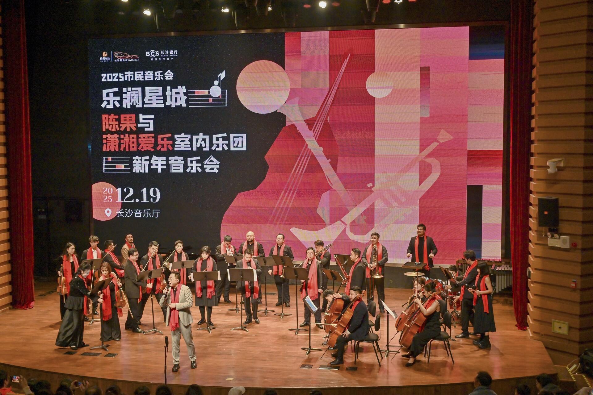 湖南日报12月21日讯(全媒体记者 杨斯涵)12月19日晚,由著名大提琴家、湖南师范大学音乐学院教授陈果携手潇湘爱乐室内乐团共同呈现的,2025市民音乐会“乐澜星城”在长沙音乐厅拉开帷幕。这场汇聚南美炽热、维也纳典雅与东方神韵的音乐会,通过13首跨地域、跨时代的作品,为长沙市民呈现了一场高水准的艺术对话。