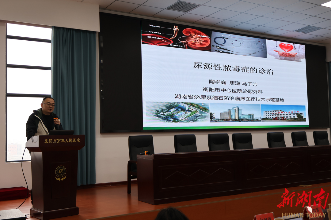 授牌仪式结束后,尹军、李远志等和衡阳市中心医院胃肠外科、泌尿外科专家参观了新开科的耒阳市第三人民医院普外、泌尿外科。谭曙光、卢锋开展了查房,马子芳开展了手术示范教学。泌尿外科团队专家阳旭明、唐潇、尧智军、肖美蓉分别就尿路结石患者的全病程管理、尿源性脓毒血症预警与治疗、“难言之隐”-前列腺增生、老年男性的“隐秘杀手”-前列腺癌、围手术期常见负性事件的预防策略与实践等主题进行了学术讲座和交流。