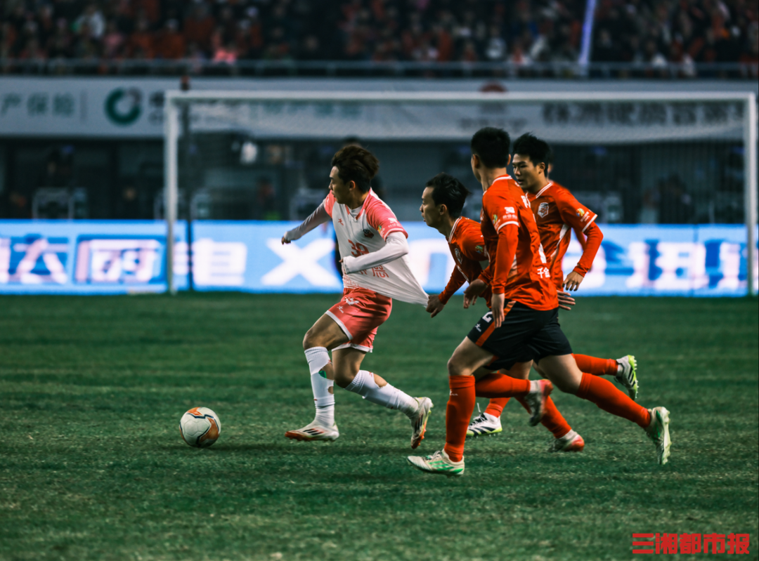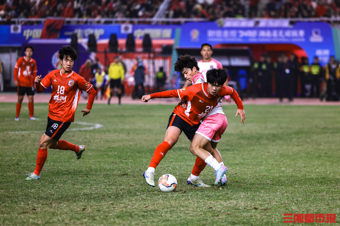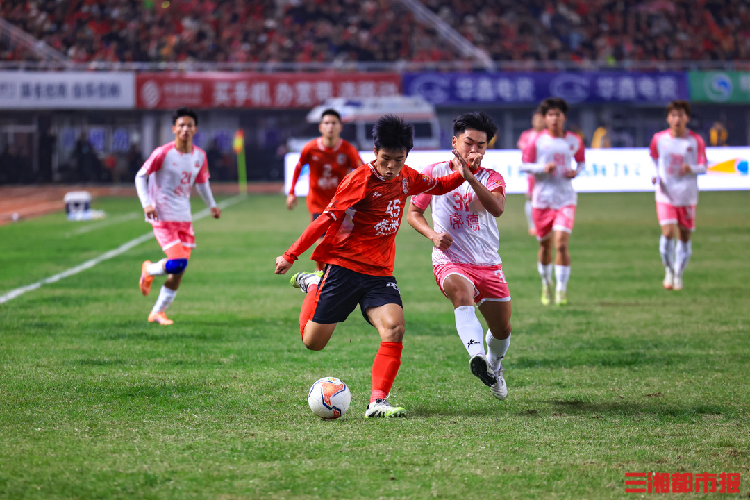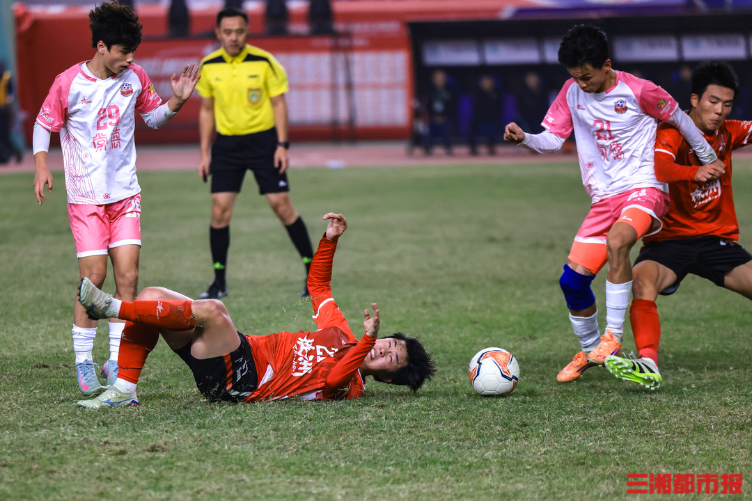 12月21日晚,又现点球大战。湘超联赛半决赛第二场,株洲队主场迎战常德队,常规时间内0:0战平,进入残酷的点球大战。最终,常德队客场5:4战胜株洲队,杀入决赛。(刘丰 叶竹 摄)