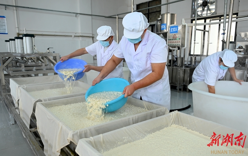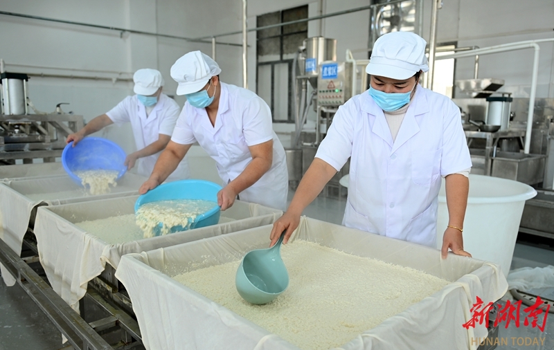 12月21日,洞口县茶铺茶场管理区洞口豆香源生态农业发展有限公司,工人在生产传统手工豆腐。近年来,该县通过加强技术创新、建立标准化流程等措施,推动豆制品等传统手工艺向现代化产业转型,有效提升产品品质并实现规模化生产。滕治中 摄(湖南图片库)