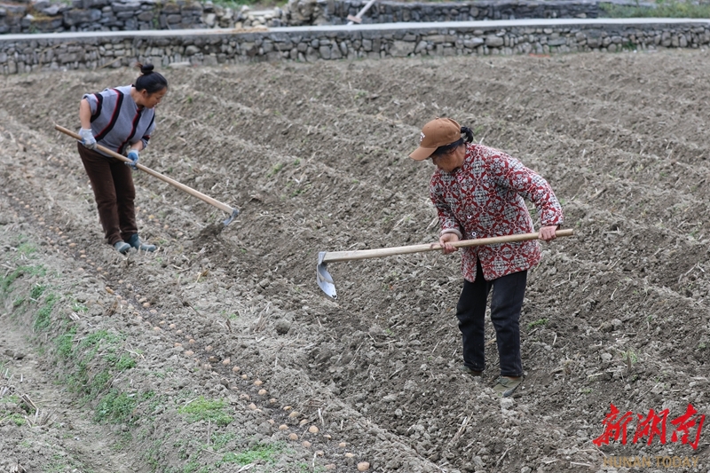 12月21日,吉首市乾州街道西门口村,村民在田间种马铃薯。冬至节气,各地农民抢抓农时开展采收、播种、农作物管护等农事活动,田间地头一派繁忙景象。彭彪 摄(湖南图片库)
