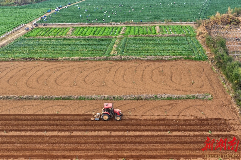 12月21日,嘉禾县供销农场,村民驾驶农机翻耕菜地。冬至节气,各地农民抢抓农时开展采收、播种、农作物管护等农事活动,田间地头一派繁忙景象。黄春涛 摄(湖南图片库)