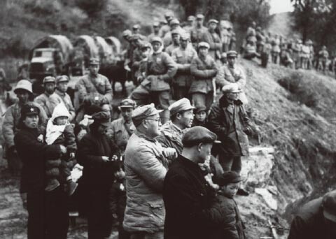 △刘伯承、邓小平进军西南途中,在铁山渡口观察敌情