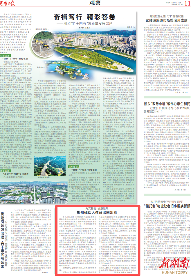 成绩的背后是郴州对残疾人体育工作常抓不懈。
