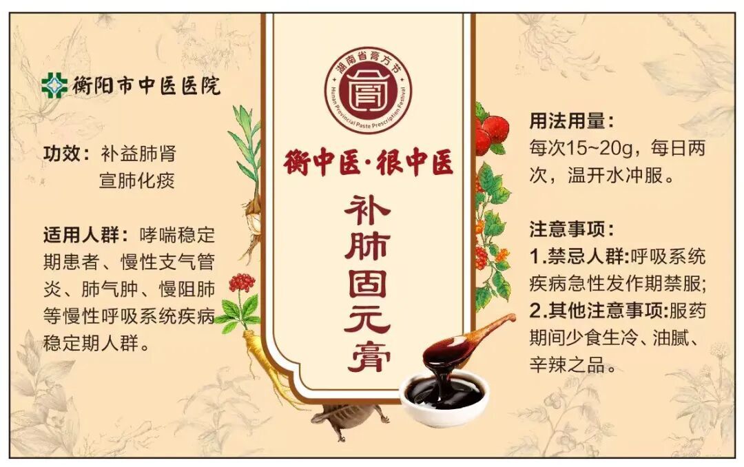 “补肺固元膏”是该院临床实践研制的特色膏方,具有补益肺肾、宣肺化痰的功效。该产品针对哮喘、慢性支气管炎、慢阻肺等慢性呼吸系统疾病稳定期的病理特点,精选道地药材科学配伍,体现了中医辨证论治的独特优势。