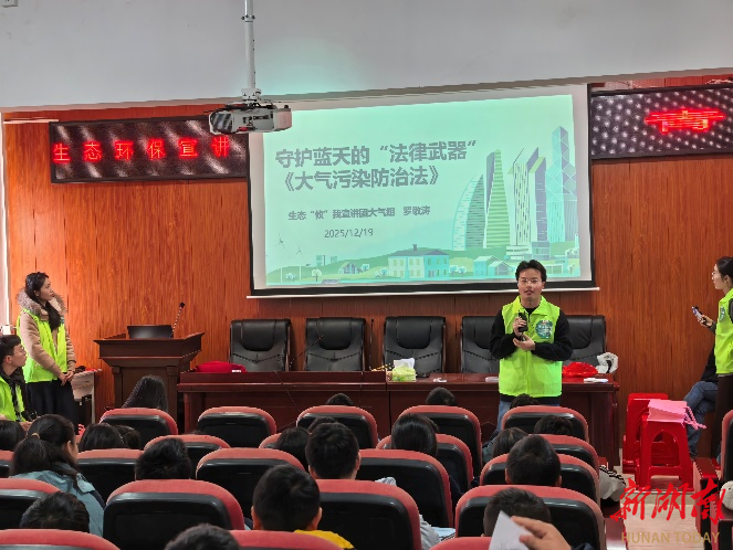 湖南日报·新湖南客户端12月22日讯(通讯员 刘和云 易梦棋 沈锐婷)12月19日上午,在攸县黄丰桥中学的教室里,一堂别开生面的“蓝天实验室”课程正吸引着所有学生的目光。当一张张攸县蓝天与雾霾的对比照片传递到手中,学生们陷入了沉思——“我们记忆中的家乡天空,应该是哪种颜色?”这场由2024、2025届攸县选调生“生态‘攸’我”宣讲团带来的沉浸式生态宣讲,用科学实验、法律知识与本土实践,为黄丰桥镇的130多名青少年开启了一扇认识家乡、守护蓝天的新窗口。