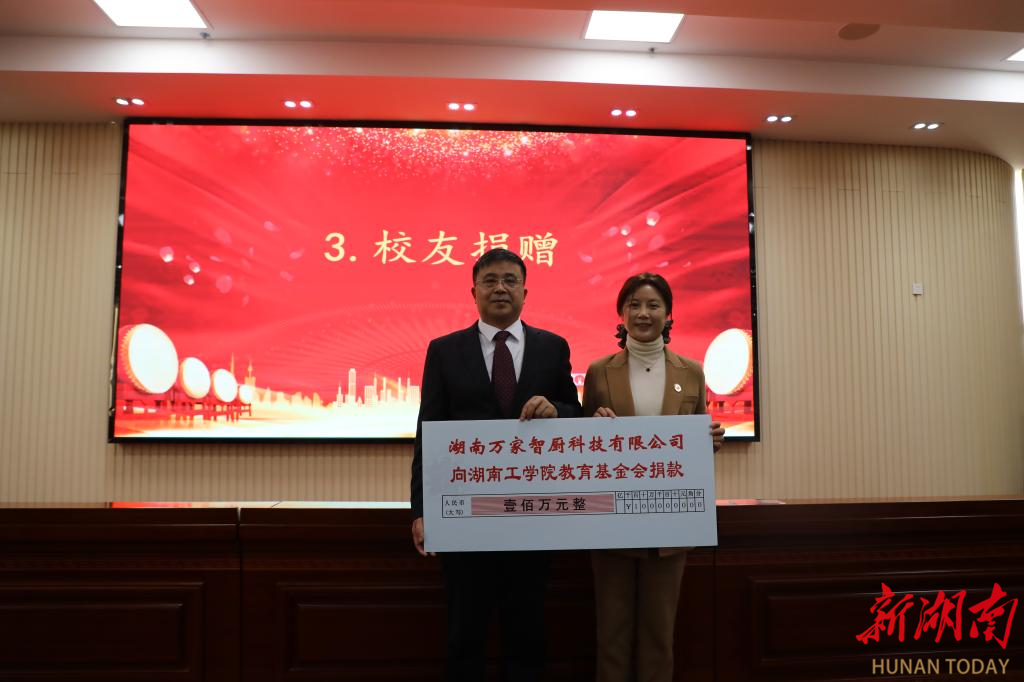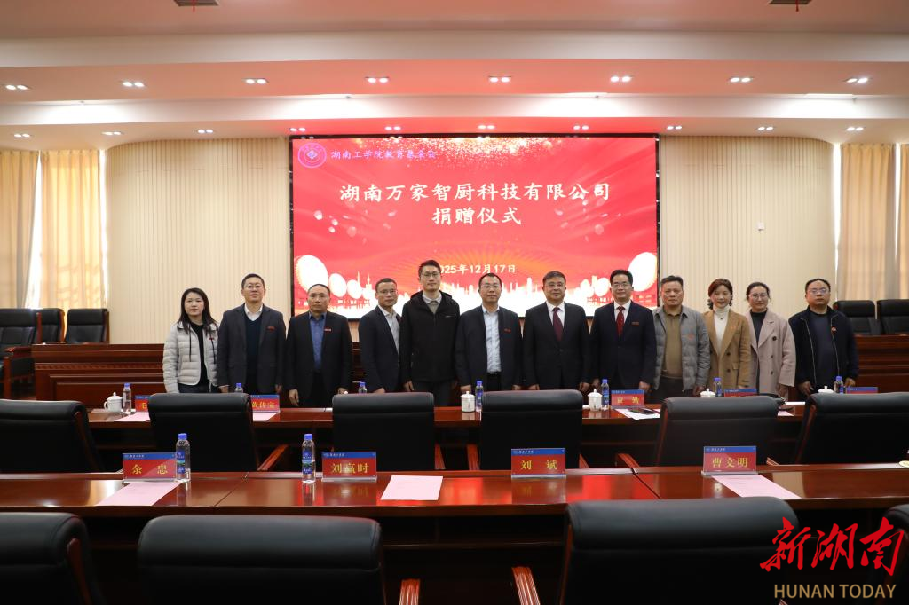 湖南日报·新湖南客户端12月22日讯(通讯员 罗晓君 李琪 谭崇瑞)12月17日,1995届硅酸盐专业校友、湖南万家智厨科技有限公司傅国要董事长向湖南工学院基金会捐赠仪式在该校举行。湖南工学院党委委员、副校长罗建新,党委委员袁勤,万家智厨董事长傅国要等出席。