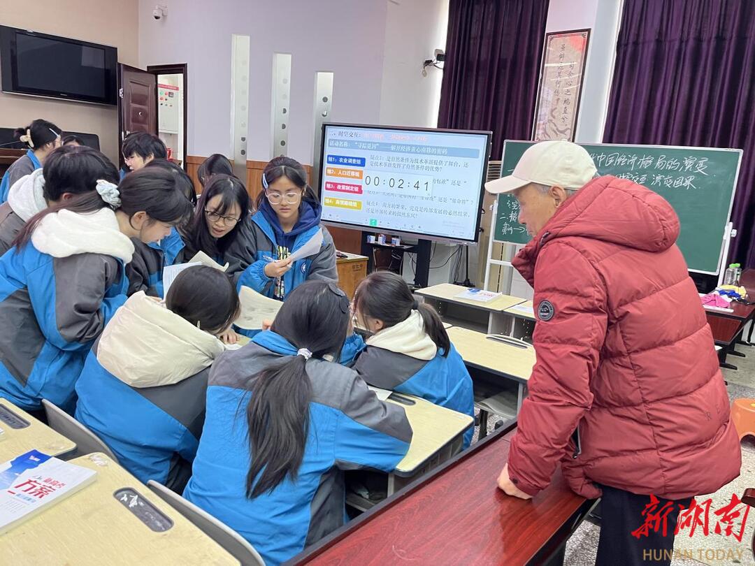 教学比武中,青年教师们利用AI技术赋能课堂,有效调动了学生自主探究的积极性,课堂气氛热烈高涨。这让年逾八旬的常德市七中原校长石振亚听完课后感慨良多,他希望青年教师们传承百年积淀的“厚德博雅,担当有为”精神,更好地学习,先天下之“优”而“优”。