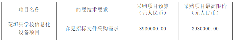 花垣县教育和体育局(采购人名称)的花垣县学校信息化设备项目 (项目名称)进行公开招标采购,现邀请合格投标人参加投标。