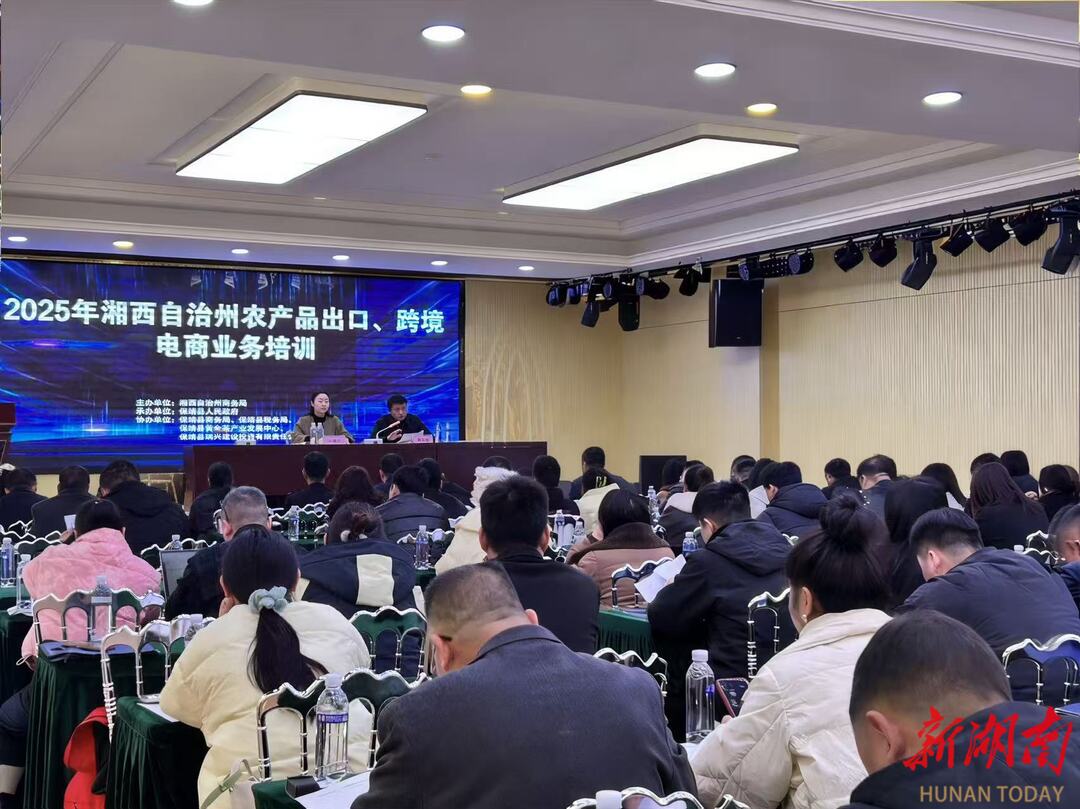 新湖南客户端12月22日讯(通讯员 王艳林)12月18日至19日,湘西土家族苗族自治州商务局在保靖县举办全州农产品出口及跨境电商专题培训,百余名企业代表及商务部门负责人参加,学习开拓国际市场新路径。