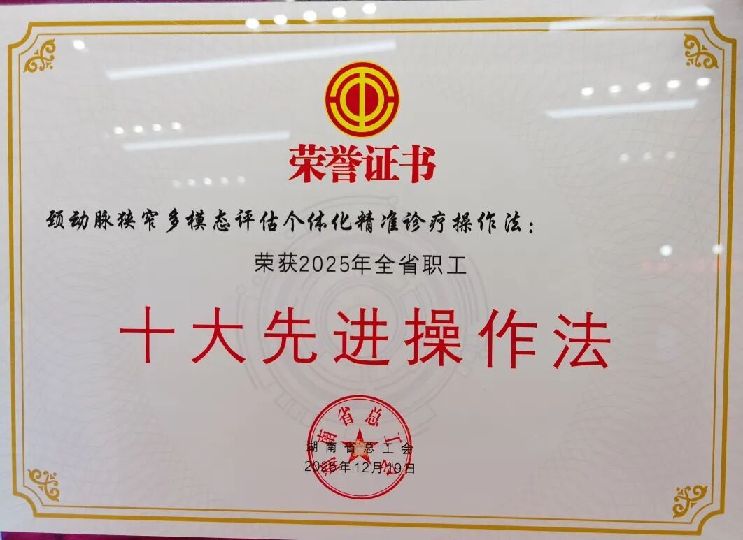 大众卫生报·新湖南客户端12月22日讯(通讯员 杨文 石荣)2025年湖南省职工优秀创新成果交流发布活动于12月19日在长沙举行,湖南省第二人民医院(湖南省脑科医院)省先进工作者、脑血管神经外科主任、主任医师刘坤同志率团队申报的 “颈动脉狭窄多模态评估个体化精准诊疗操作法” 成功入选全省职工十大先进操作法,刘坤同志受邀参加活动。