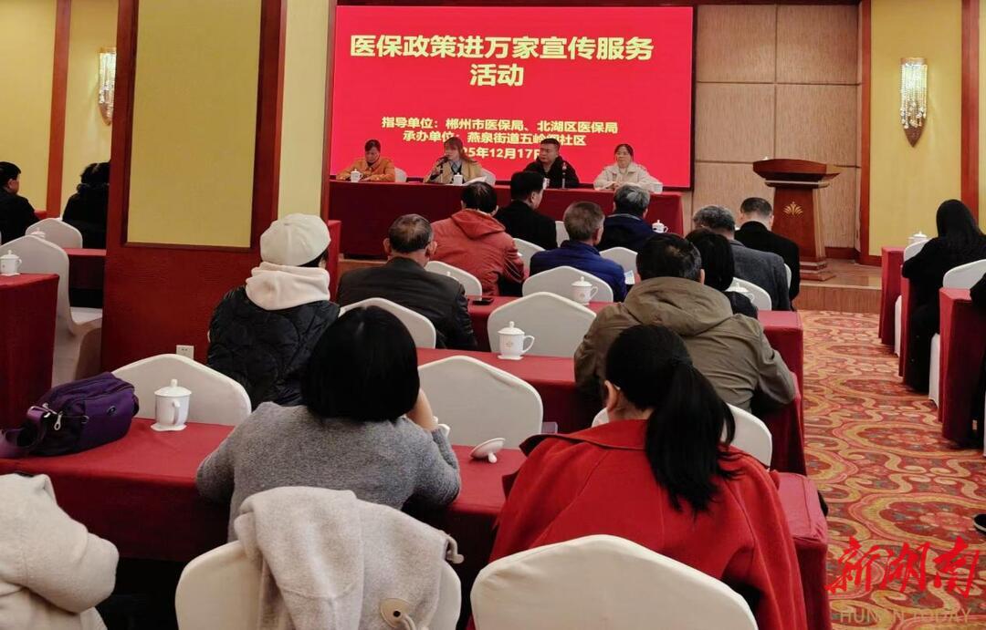 新湖南客户端12月22日讯(通讯员 陈逸超)12月20日,郴州市北湖区燕泉街道五岭阁社区联合郴州市医保局、北湖区医保局开展了以“医保政策进万家,健康保障你我他”为主题的医保宣传活动。