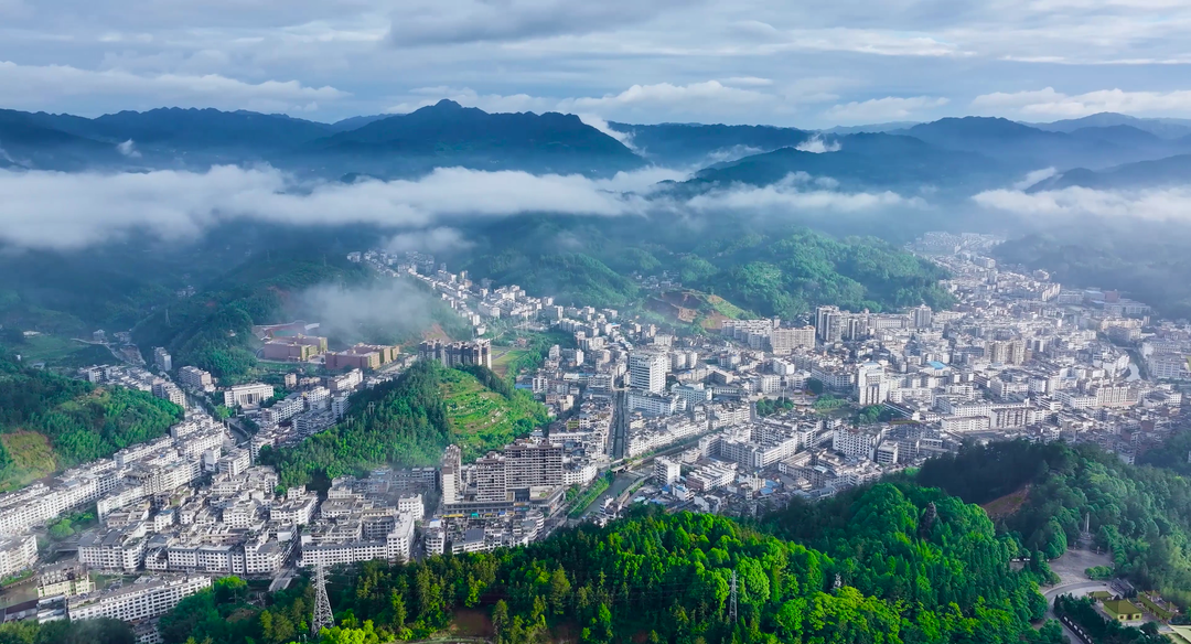 青山绿水的桂东县城。(桂东融媒体中心供图)