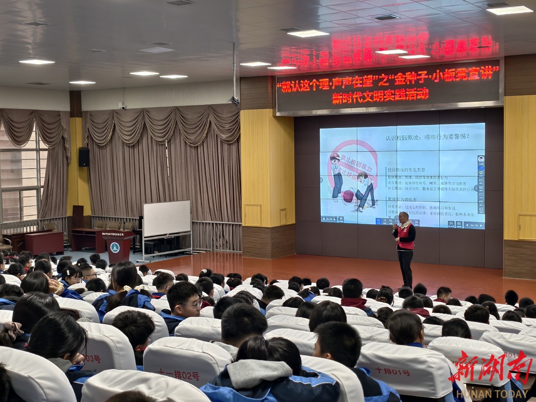 湖南日报·新湖南客户端12月22日讯(记者 谢璐)今天下午,“就认这个理•声声在望”之“金种子•小板凳宣讲”新时代文明实践活动走进湖南师大附中星城实验学校,为该校初一年级6个班的学生带来精彩一课。