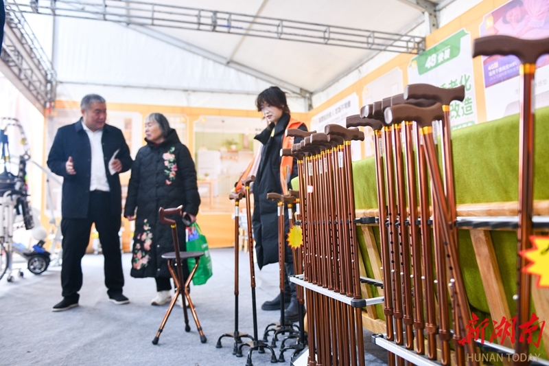 12月22日,市民在了解适老化产品。 连日来,娄底市第二届“银发经济消费月”活动在娄星区孙水公园举行,通过五大主题展区,全方位展示新产品和新技术,涵盖养老、医疗、消费等多个领域。活动旨在促进银发经济发展,提升银发消费水平,助力老年友好城市建设。吴永华 摄(湖南图片库)