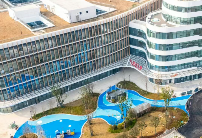 项目坐落于梅溪湖国际新城二期核心区,紧邻地铁2号线映日路站,交通便利。秉持“以患者为核心”为理念,项目在省内率先引入“医疗街”模式,通过将诊室、检查室等核心诊疗区域沿主街线性布局,搭配集中候诊区,构建起“诊断-检查-治疗”闭环服务流程,显著简化就医动线。同时,项目着力打造“花园式”诊疗环境,采用柔和室内色调,并规划配备直升机停机坪,设置120河西妇幼分中心,构建空中与地面联动的立体急救网络。