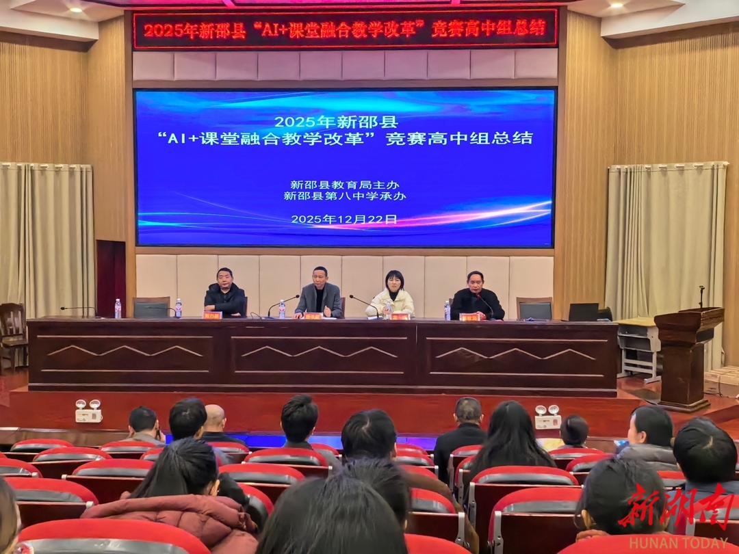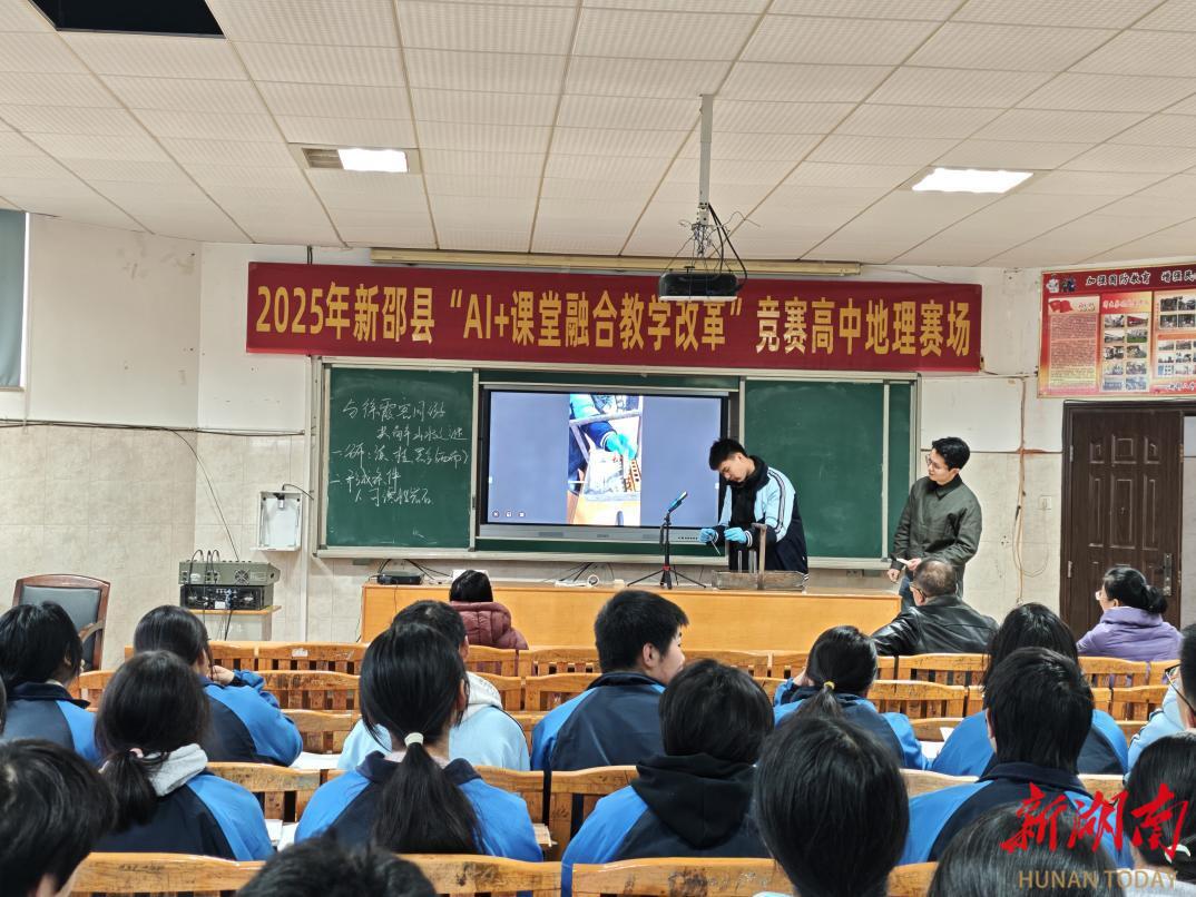 新湖南客户端12月23日讯(通讯员 钟九胜 蔡星)12月22日,新邵县教育局在新邵八中成功举办全县高中“AI+课堂融合教学改革”竞赛课活动。县人大常委会副主任田丰硕、县教育局副局长龙姝等领导来到现场指导,全县多所高中教师及多个名师工作室成员齐聚一堂,共同观摩了英语、地理、历史三个学科的AI融合课堂实践。