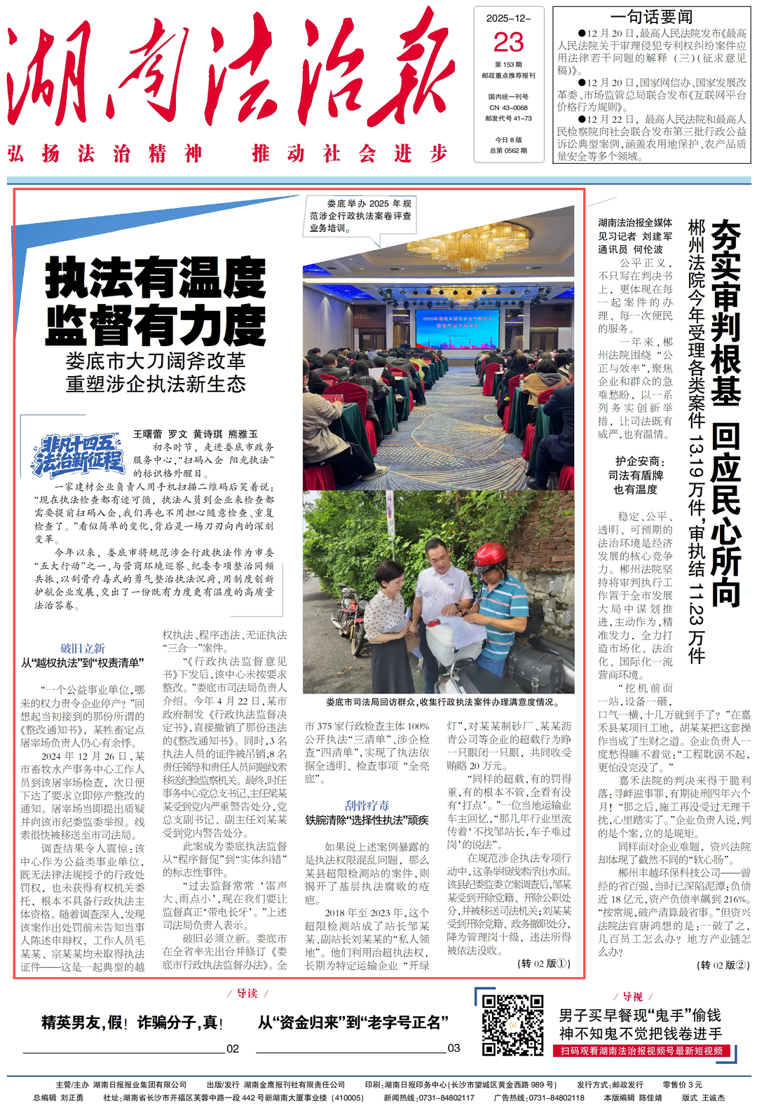 今年以来,娄底市将规范涉企行政执法作为市委“五大行动”之一,与营商环境巡察、纪委专项整治同频共振,以刮骨疗毒式的勇气整治执法沉疴,用制度创新护航企业发展,交出了一份既有力度更有温度的高质量法治答卷。