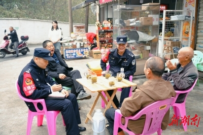 持续强化基层治理,纵深推进共建共治共享新格局。图为湘潭市公安局岳塘分局民警在社区走访过程中与群众拉家常。湖南法治报通讯员 陈康为 摄
