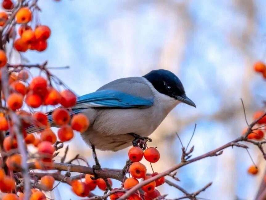 海棠树是世园国际度假区的特色树种,既有西府海棠、八棱海棠、山荆子、贴梗海棠、垂丝海棠等传统品种,也有春雪、绚丽、丰盛、亚当、王族、红丽、印第安魔力、罗宾逊、高原之火、当娜等北美海棠,共计60个品红6400余株。这些海棠树春季赏花、大部分果实秋末成熟能留存至深冬,成为冬季鸟类的 “天然粮仓”。北方的冬日,草木凋零、昆虫蛰伏,麻雀、太平鸟、斑鸠、灰喜鹊等留鸟与冬候鸟面临食物短缺困境,而富含糖分和维生素的海棠果,恰好能为它们补充能量、抵御严寒。