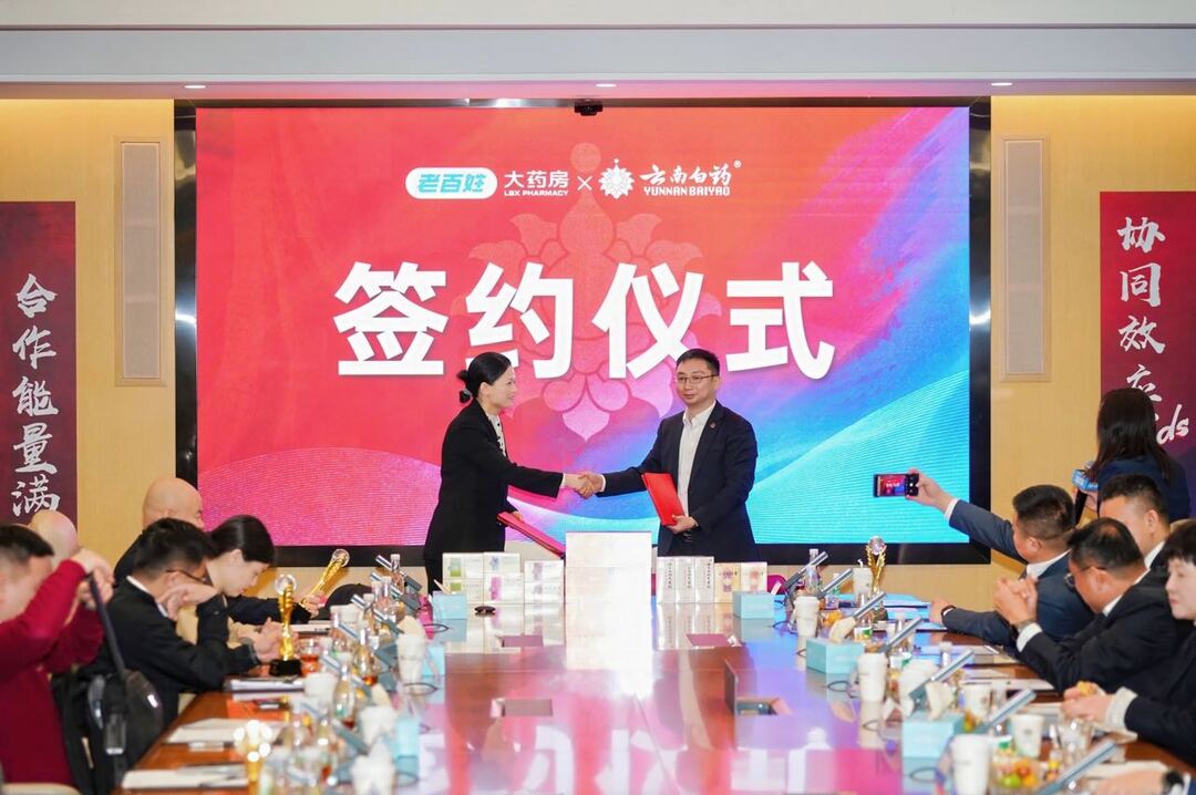 溯源期间,双方同步举办战略合作签约仪式,围绕数智云药支持平台、多生产线产品开发、终端药事服务赋能等核心内容展开深度洽谈。云南白药凭借百年品牌积淀、核心技术优势与标准化生产体系,构建了从产地到终端的品质溯源闭环,为合作提供坚实的产品品质保障与技术支撑;老百姓大药房则依托全国覆盖广泛的终端门店网络与上万名专业药师团队,成为连接优质产品与消费者的重要桥梁。