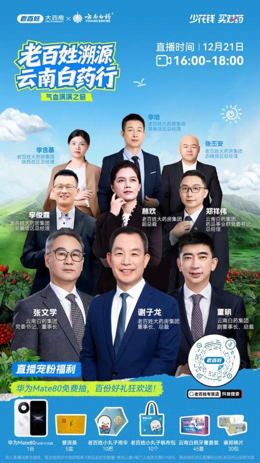 2025年12月21日,“老百姓溯源—云南白药行”三七产地溯源专项行动圆满收官,这场跨越千里的全链路与透明化溯源探访,筑牢大众对 “源头好药” 的认知与信任根基。与此同时,双方在云南昆明举办战略合作签约仪式。老百姓大药房集团董事长、总裁谢子龙,副总裁林欢 ,云南白药集团党委书记、董事长张文学,党委副书记、副董事长、总裁董明,党委委员、药品事业群党委书记、总经理郑祥伟等相关人员出席会议,共绘医药健康产业生态新蓝图。