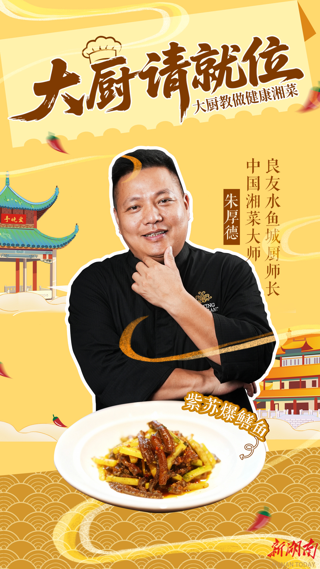 紫苏遇鳝鱼,爆炒出奇香!本期《大厨请就位》栏目特邀良友水鱼城厨师长、中国湘菜大师朱厚德,带来一道考验火候的湘菜——紫苏爆鳝鱼。一把紫苏、一勺热油,爆出湖湘最接地气的烟火气。学会它,你就是家里那个最懂“爆炒”的厨神。#转给你家里做饭的人#大厨教做健康湘菜