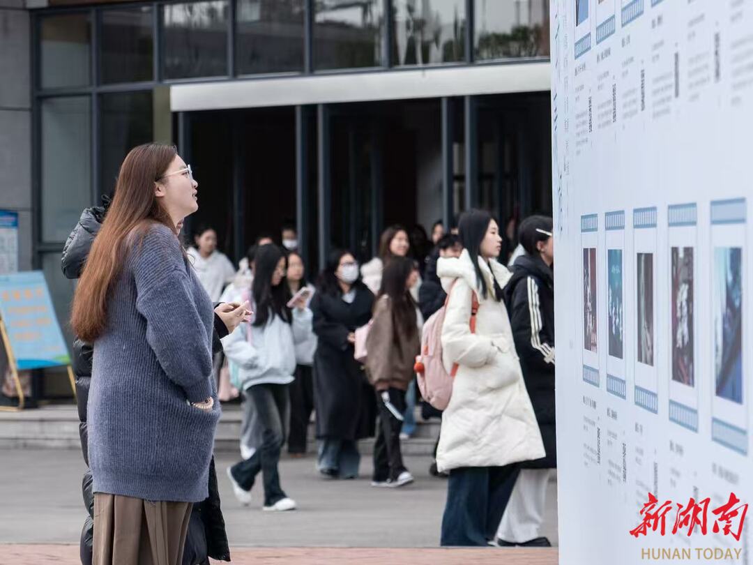 特色板块串联起完整展览脉络,带领观众穿梭古今,沉浸式领略从历史湖湘到当代湖湘的生动视觉叙事。每一块展区、每一件作品,都是师生对“心忧天下、敢为人先”湖湘精神的深刻解读,更是他们以传媒之力传承文化、以青春之姿践行思政使命的创新呈现。