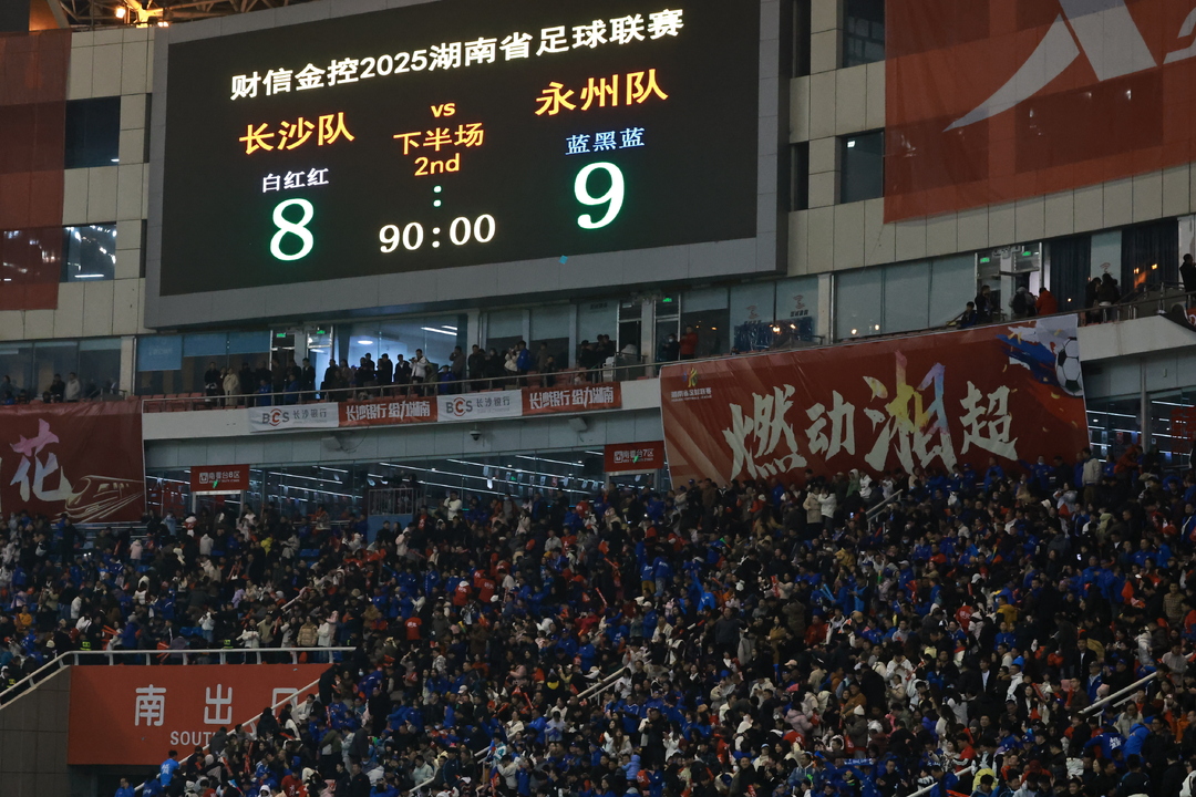 新湖南客户端12月23日讯(通讯员 胡韦军 王丽华)12月20日晚,43298名观众在长沙贺龙体育中心共同见证了一场激动人心的湘超巅峰对决。最终,永州队用一场惊心动魄的胜利,诠释了“敢拼敢闯、逆流而上”的“永冲锋”精神,昂首挺进决赛!