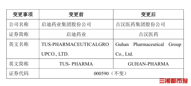 三湘都市报·新湖南客户端12月23日讯(全媒体记者 仝若楠)12月23日,启迪药业集团股份公司(证券代码:000590,下简称“启迪药业”)的证券简称变更为“古汉医药”。