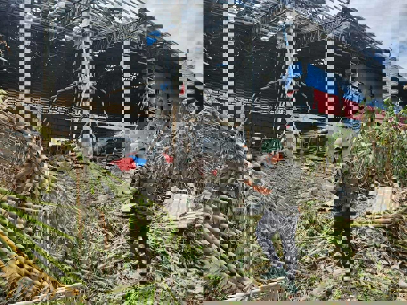 这是12月18日在柬埔寨班迭棉吉省拍摄的一处被泰国军队轰炸的民用设施。