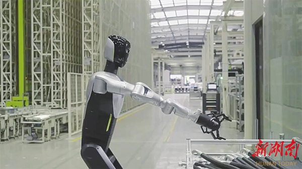 中联重科研制的人形机器人在工厂分拣作业。刘成坤 摄