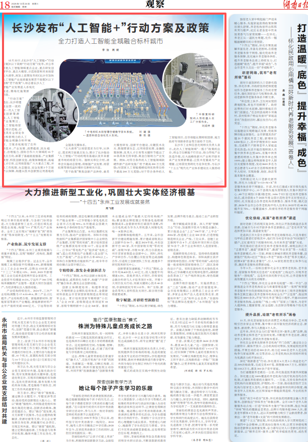 长沙市工业和信息化局相关负责人表示,此次人工智能领域“一揽子”政策的出台,将全方位赋能千行百业,助力传统产业改造升级,壮大战略性新兴产业和开辟未来产业发展新赛道,让技术变量成为产业增量、让场景优势转化为竞争优势,为长沙“十五五”现代化产业体系建设注入强劲动能。