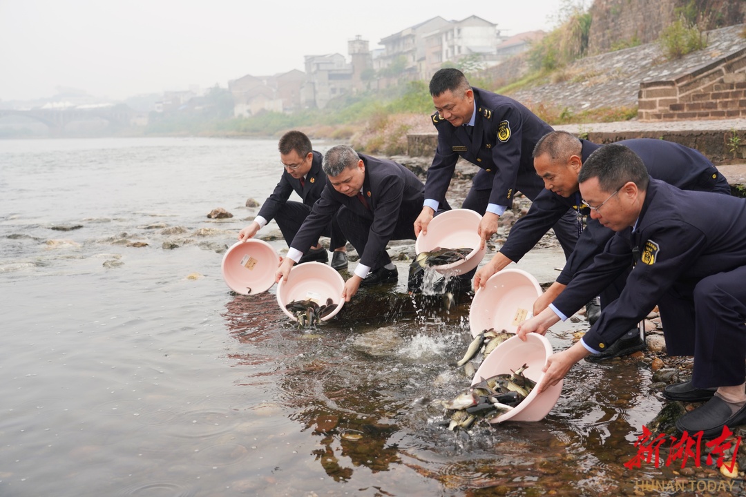 10月30日,茶陵县检察院联合县农业农村局,在南浦铁犀洣水河畔以增殖放流的形式,开展了一场特殊的生态修复行动,推进了相关非法捕捞刑事附带民事公益诉讼案的生态修复工作。