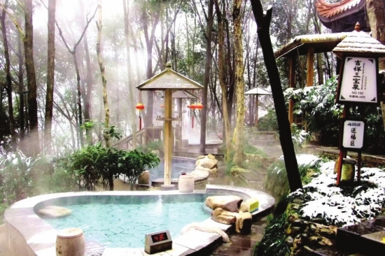 被誉为“返老还童泉”的氡温泉,是张家界冬季康养的王牌选择。99个风格各异的泉池错落镶嵌在千亩森林中,常年恒温53℃的天然自涌泉水,富含氡、氟等多种有益微量元素,直供直排的模式保证了水质纯净。泡在林间泉池,听松涛阵阵,看雪花簌簌,既能促进血液循环、缓解关节不适,又能在负氧离子充沛的环境中放松身心,爬山之后泡一泡,暖意直达心底。