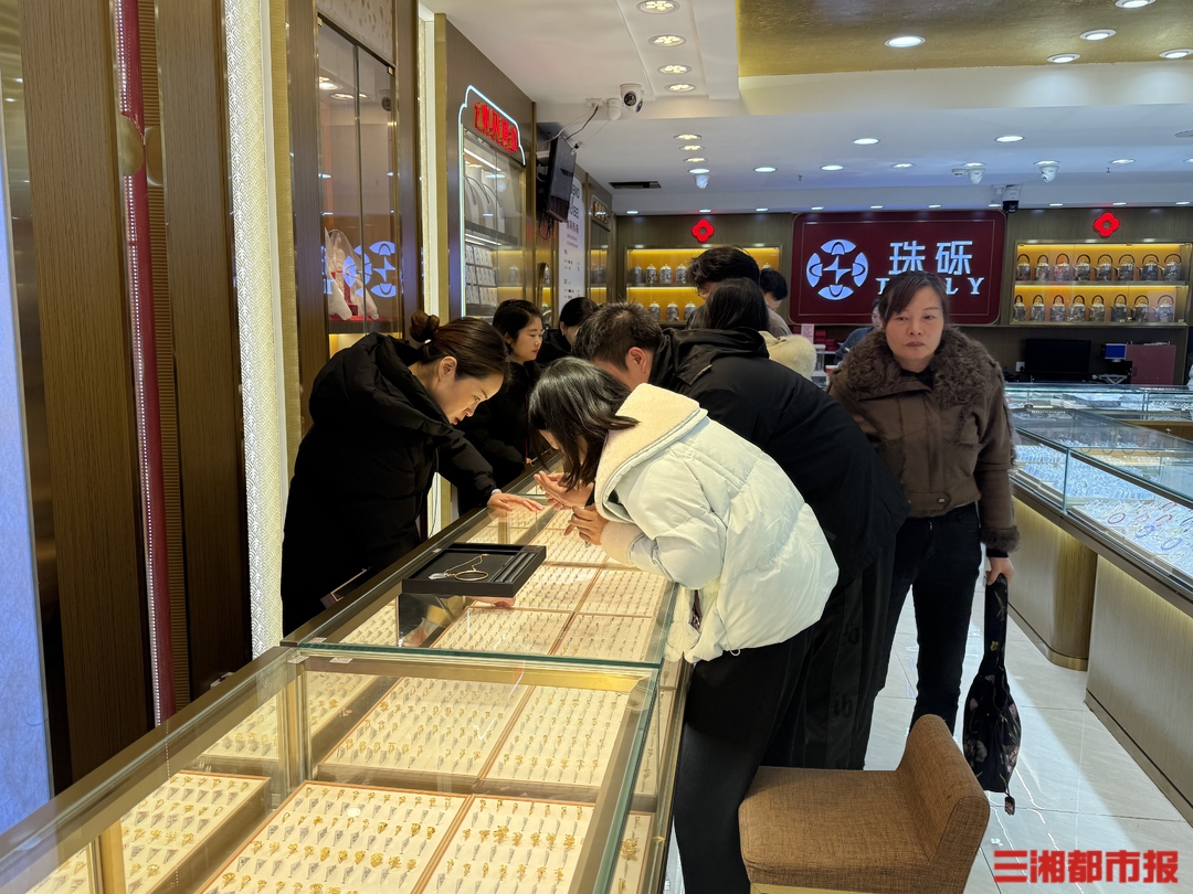 在名汇达黄金珠宝交易中心周边,多家非品牌黄金门店的金饰价格已普遍涨至1024元—1029元/克。记者来到一家名为“水贝黄金”的门店内,明亮的柜台前几乎都聚集着2—3组顾客,年轻情侣成为消费主力。“早上醒来刷朋友圈,全是黄金销售发的‘大盘破1000元/克’消息,婆婆催着赶紧来选,怕再涨就超预算了。”正在挑选项链的赵女士手持计算器核算价格,她选中的金饰单价1025元/克,“虽然比上个月贵了不少,但刚需没办法,这个价格还能接受。”