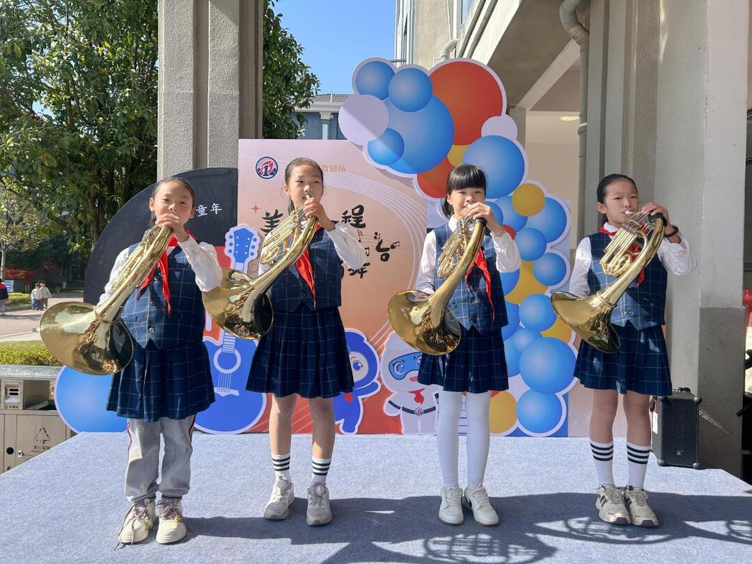 “流动美育课堂”成为本次活动的吸睛亮点,一场场精彩艺术表演轮番上演,化作校园里一道灵动的移动风景线。长笛、小号奏响明快悠扬的旋律,独唱童声清脆嘹亮,主持表演社团的小选手们台风稳健、落落大方,台下掌声与欢呼声此起彼伏。