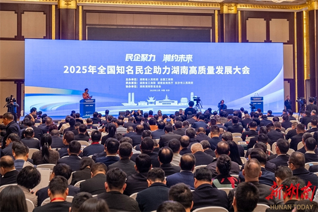 The 2025 Conference on Nationally Well-known Private Enterprises Supporting Hunan's High-Quality Development was held in Changsha on December 22. The conference was jointly hosted by the Hunan Provincial People's Government and the All-China Federation of Industry and Commerce (ACFIC). It served as a window of opportunity for well-known private enterprises across the country to learn about, explore, and invest in Hunan. It also acted as a bridge and bond for local private enterprises in Hunan to broaden their horizons, improve their concepts, and integrate into a broader industrial ecosystem. (Photo/Tong Zhenxi and Yi Ang, Hunan Daily)