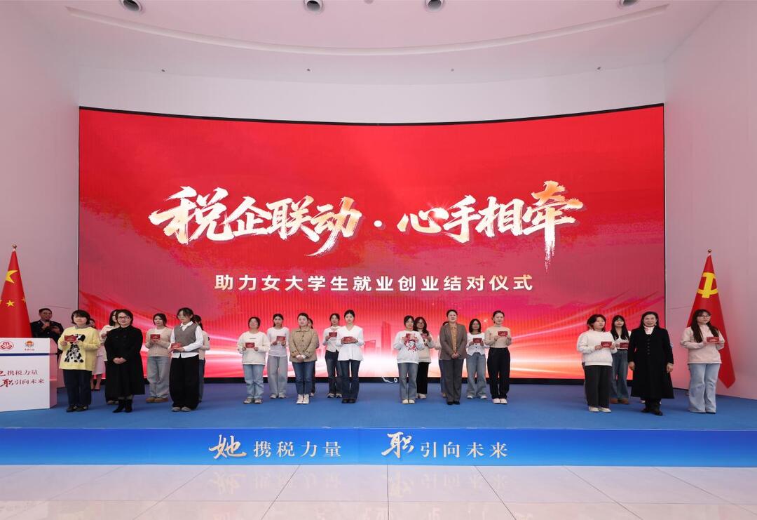 活动中,税务、人社部门的业务骨干以“案例讲解+视频解读+互动问答”的方式,向女大学生们现场宣讲有关助力大学生就业创业的政策,不断激发女大学生的创业就业活力。邀请湖南海外旅游有限公司董事长蒋艳妮分享创业经历,以及其与女大学生结对就业的故事。组织湖南再红刺绣艺术博物馆、绿之韵生物工程集团有限公司、湖南申亿精密零部件股份有限公司等11户企业与55名高校女大学生代表举行“心手相牵”助力就业创业结对仪式,使其在“部门+高校+企业”的“铺路搭桥”中创赢未来。