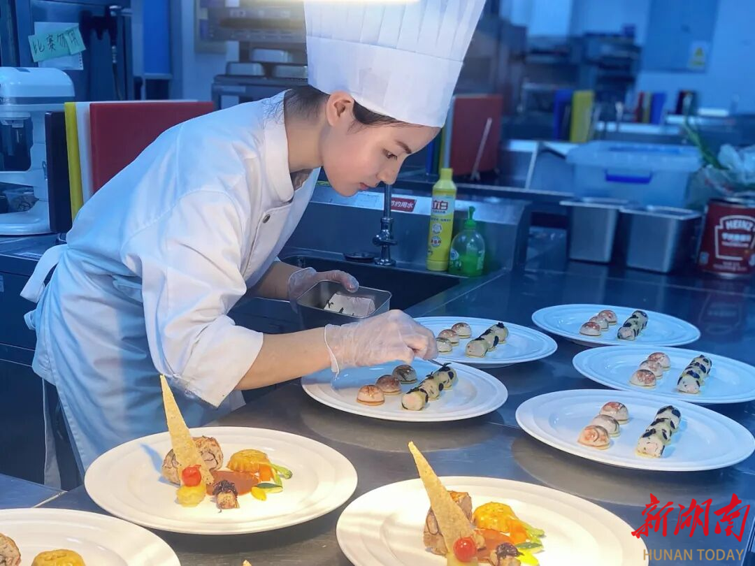 如今,入选国家集训队的匡鹏娜已瞄准了更高的目标——第48届世界技能大赛。她将面点制作中对形态、色彩的细腻感知,融入西餐的摆盘艺术;将中式烹饪中对“火候”的理解,迁移到西餐的精准温控。她说:“以前觉得上课能把面包烤好就是成功,现在的目标是在更高的舞台上全力以赴,不辜负对技能的热爱与坚持,在世界舞台上展现中国青年技能人才的奋进风采,让世界尝尝我们新一代中国厨师的匠心味道”