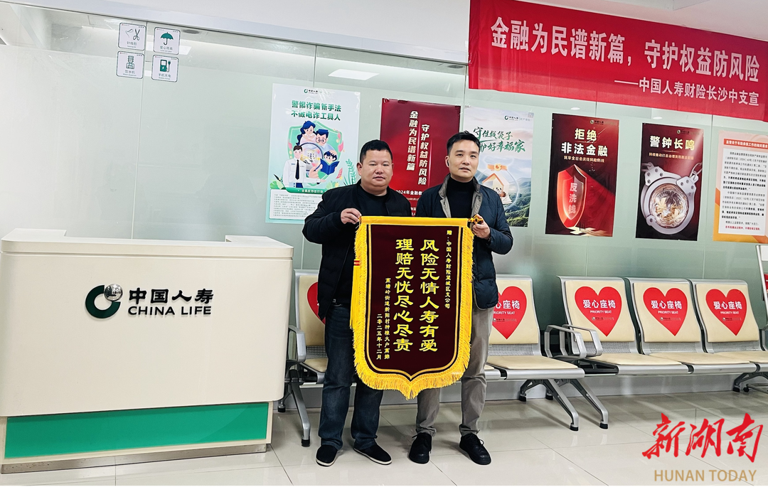 湖南日报·新湖南客户端12月24日讯(通讯员 徐佩)近期,一面写有“风险无情,国寿有爱”的锦旗被送至中国人寿财产保险股份有限公司望城区支公司,客户以此表达对公司高效理赔与暖心服务的高度认可。