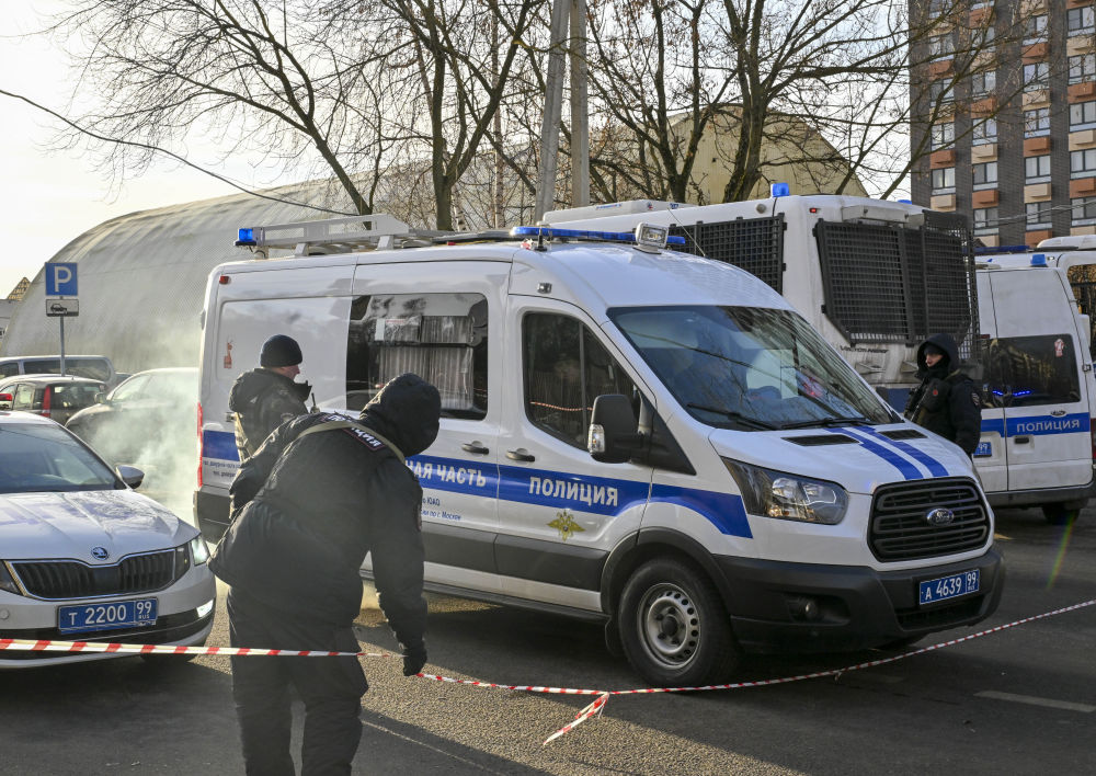 12月24日,在俄罗斯首都莫斯科南部,警察在爆炸事件现场警戒。