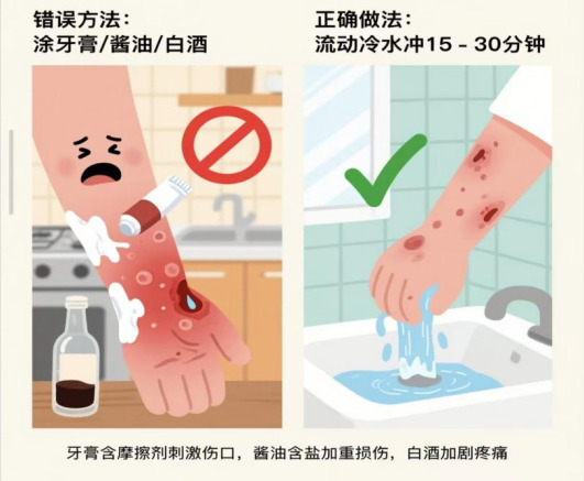 专家表示,一旦发生低温烫伤,切记不要盲目处理,不可强行去除烫伤部位的衣、物等,避免造成撕脱伤。切忌涂抹红药水、紫药水等有颜色的药物,以免影响医生对创面深度的判断,更不要用酱油或是牙膏涂抹烫伤处,否则容易引起烫伤处感染。正确做法是迅速将受伤部位从热源移开,以防止进一步伤害。Ⅰ度烫伤者,可以用流动的冷水(不是冰水)冲洗烫伤部位15至30分钟,以降低皮肤温度,减轻疼痛和炎症。Ⅱ、Ⅲ度烫伤者应及时就医处理。
