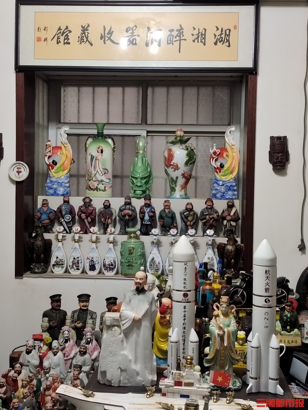 12月24日,湘潭市红旗商贸城E区,73岁的涂德华推开家门,近7000件酒器在晨光中铺展开来。从墙角到屋顶,层层叠叠的展柜里,瓷瓶温润如玉,玻璃瓶剔透晶莹,金属酒器沉稳厚重,异域藏品别具风情。