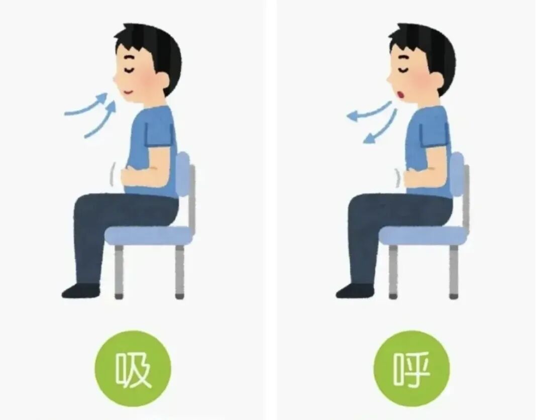▲ 有意识地调整呼吸:当感到紧张、疼痛或出现上述征兆时,请有意识地将呼吸放缓、加深。尝试“鼻吸口呼”:用鼻子缓慢吸气(心里默数4秒),然后用嘴巴像吹蜡烛一样更缓慢、均匀地呼气(延长至6-8秒),重点在于延长呼气时间,这能有效帮助身体放松,打破恶性循环。