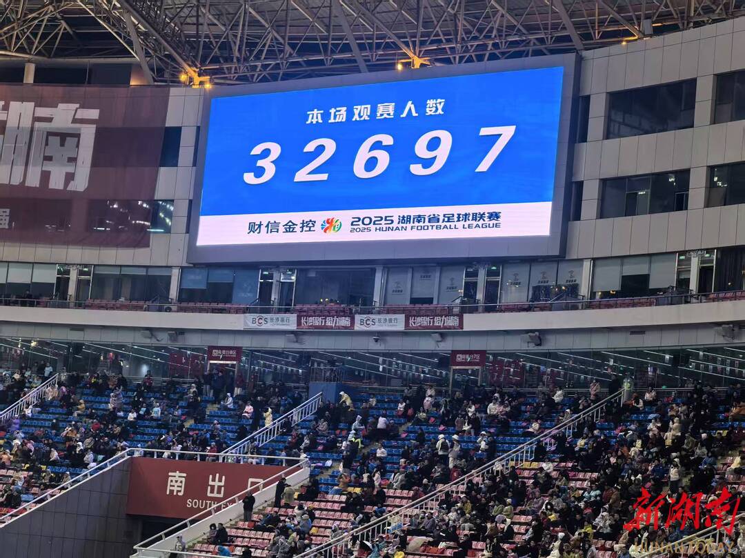 12月24日晚,长沙贺龙体育场,随着第90分钟哨声响起,湘超长沙队VS大湾区湖南人队的友谊赛落下帷幕。在全场32697名球迷的助威呐喊声中,长沙队3:2战胜大湾区湖南人队,成功守卫了主场荣耀。